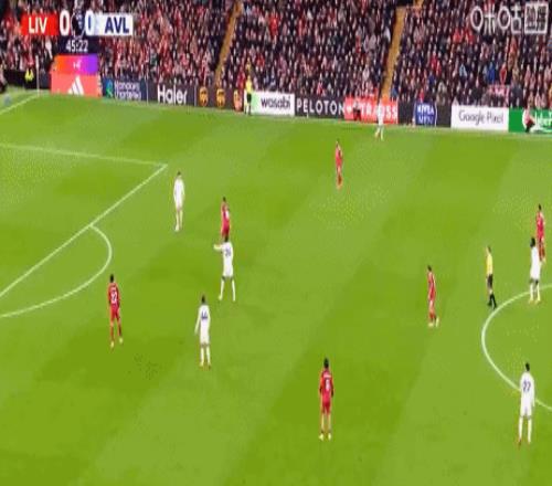 第45+1分钟,双方仍0比0僵持。马丁内斯在本方禁区内试图将球传给队友保·托雷斯,却一脚将球直接送到了利物浦前锋萨拉赫的脚下。这位埃及球星反应迅速,面对空门轻松推射得手,为利物浦在上半场结束前打破僵局。值得一提的是,在此之前,利物浦已狂轰13脚射门却一球未进,这次破门来得“意外”却关键。