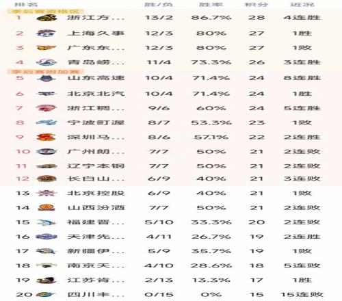 CBA常规赛第15轮结束了7场比赛,最新积分榜如下!